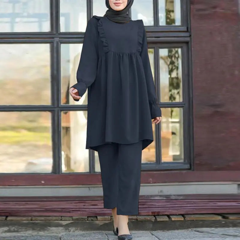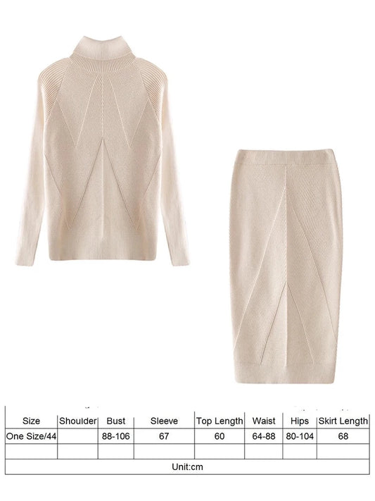 Autumn Women's Knitting Turtleneck Sweater + Skirt
