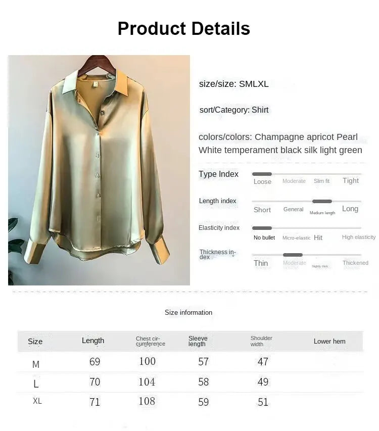 Women Autumn Shirt Vintage Satin Blouse Long Sleeve Satin Button Down Silky Shirt Work Office Top Ladies Casual Shirt