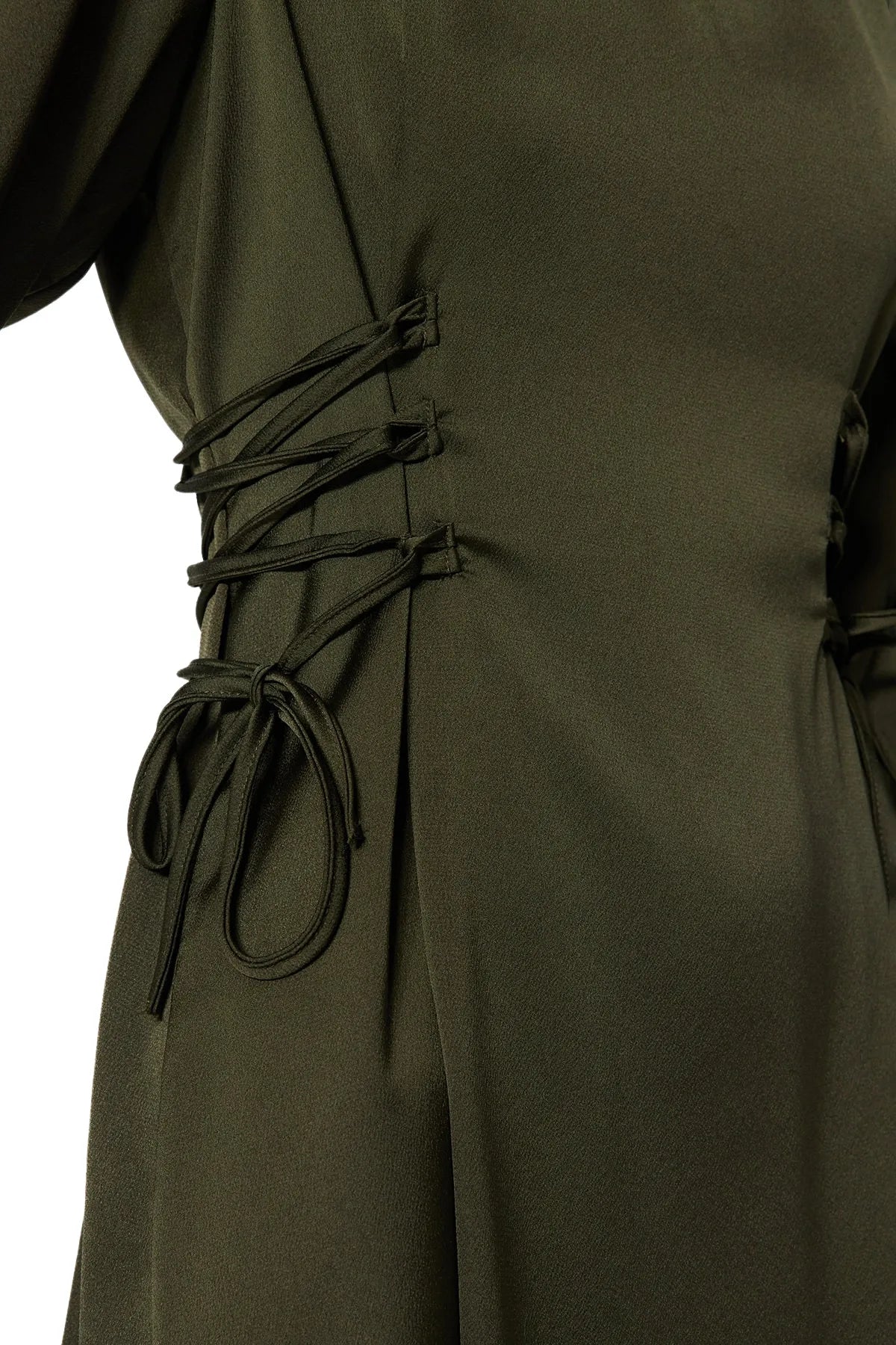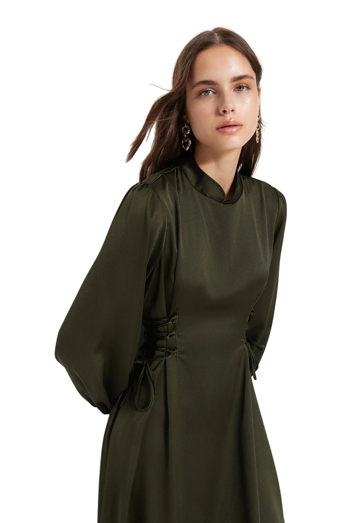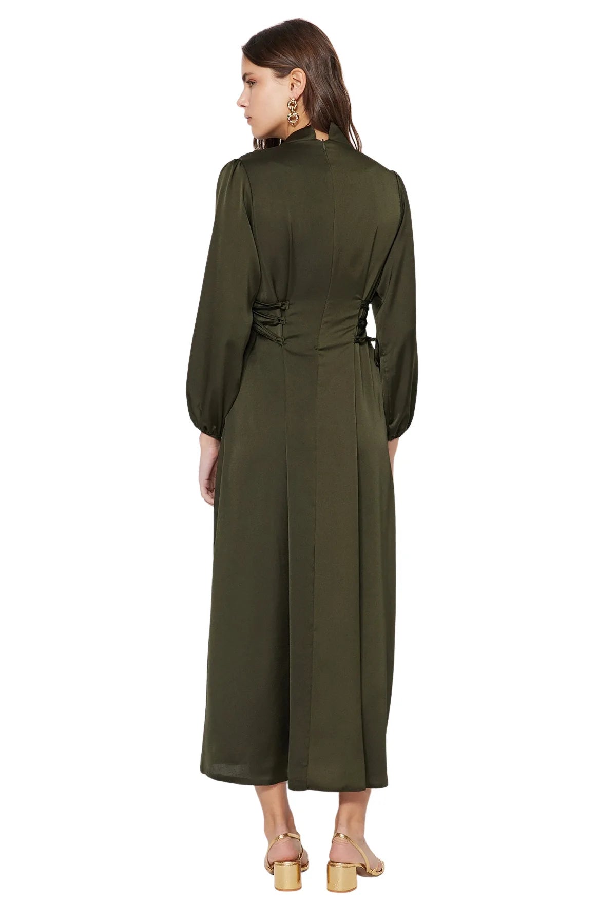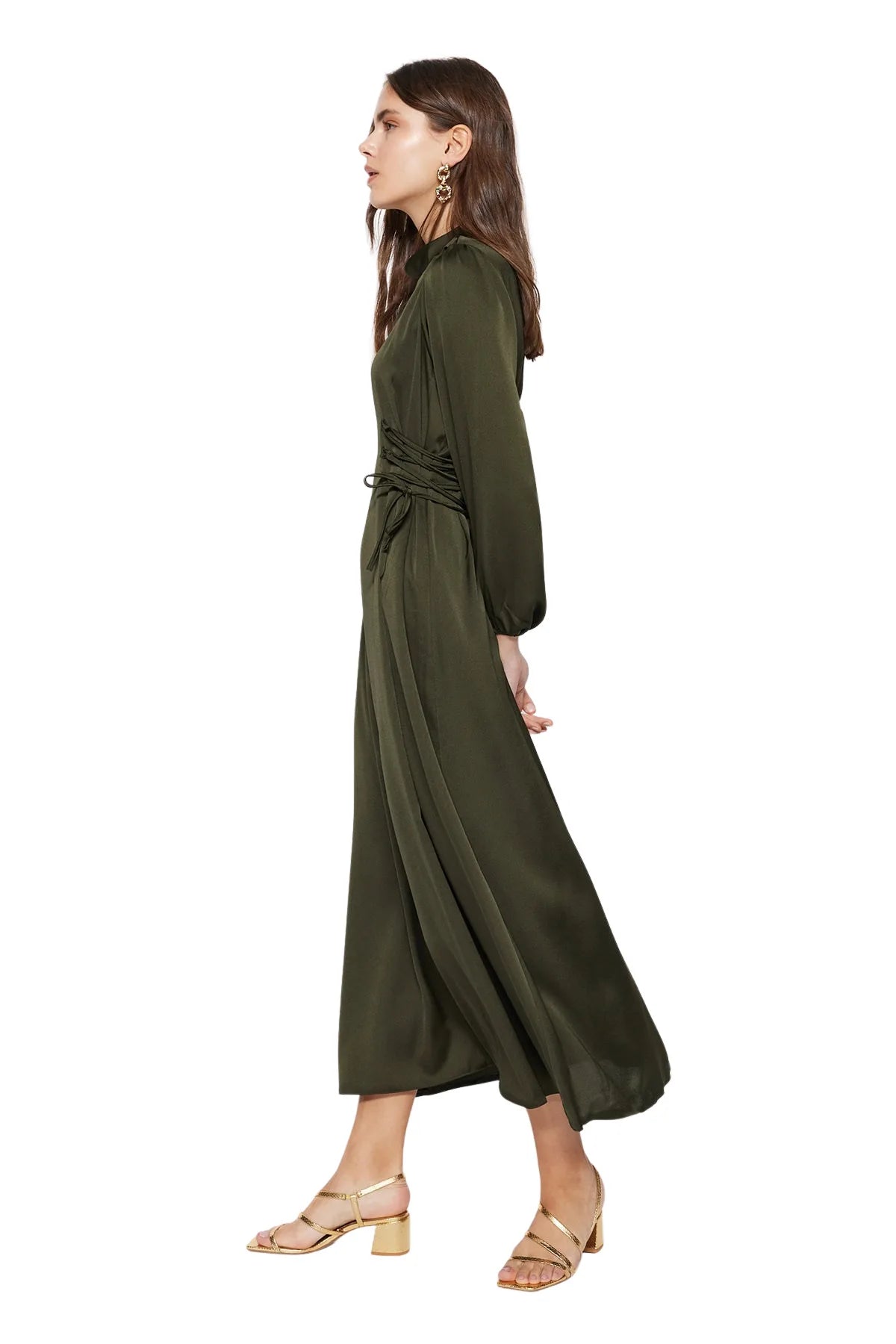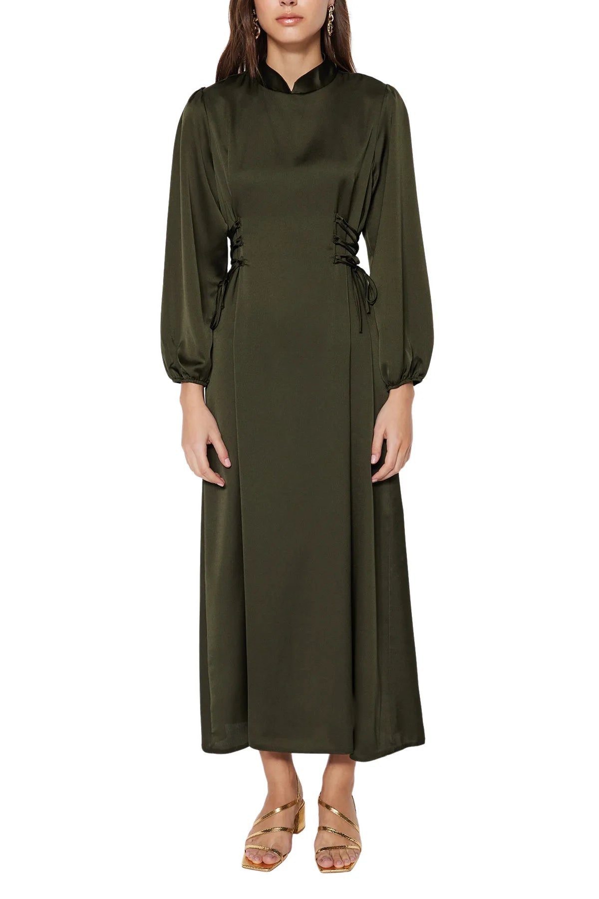 Model Information: Model's Measurements: Height: 176cm(5'9'') Bust: 82cm(32in) Waist: 61cm(24in) Hips: 89cm(35in);The product on the mannequin is size S/36/8; ;Material Composition: 100% Polyester ;Fabric Type: Woven ;Model Front Length: 135.0 cm ;Please follow the washing instructions given below so that you can use your product for a longer time and care for your product properly. ;Unlined, recommended to wear with a lining. ; Colors may vary in studio shots due to the difference in light.